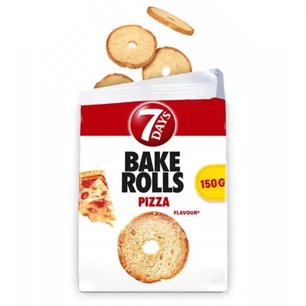 Med 7 Days Bake Rolls Pizza får du en snack med karakter og masser af smag. En sikker vinder til både børn og voksne, der elsker klassiske og fyldige smagsoplevelser.