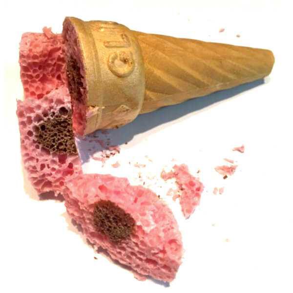 Kun i Japan! En ikke-smeltebar vaffelis! Denne vaffel er fyldt med boblechokolade med jordbærsmag, ikke ulig en Aero! Med et chokoladefyldt indre og jordbærovertræk er det en anderledes, skæg, sprød og sød lækkerbisken, du bare må prøve!
