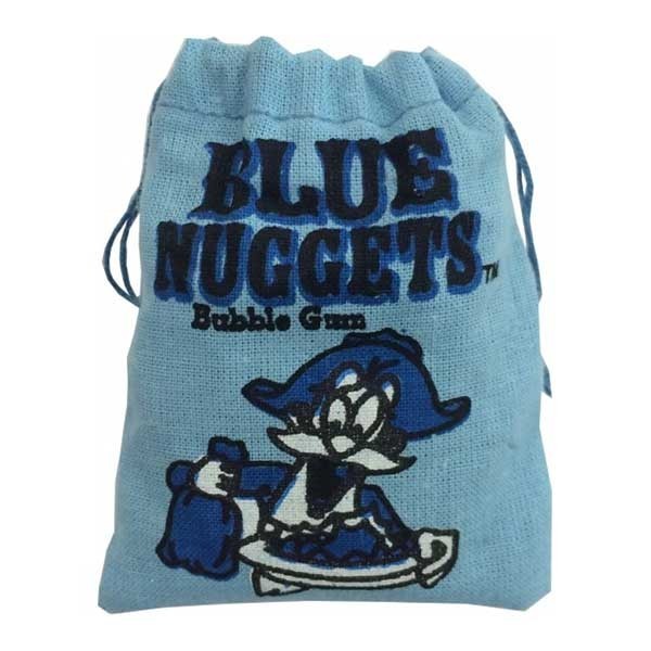 Klumper af tyggegummi med smag af blå hindbær. Du har fundet guld! Disse klumper af tyggegummi med smag af blå hindbær er pakket i en lille hessianpose, er fulde af frugtsmag og brilliante at blæse gigantiske bubler med. De blå tyggegummiklumper er perfekte at komme i slikposen til festen.