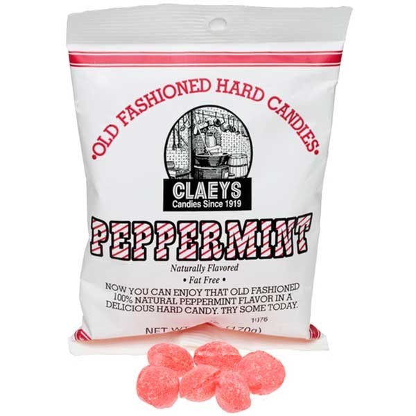 Få en smag af de gode gamle dage med Claeys pebermyntebolsjer, med samme smag af pebermynte som da du var barn. Clays bolsjer har været lækre og friske siden 1919, og er siden blevet en garanteret leverandør af den delikate og gode smag i de mange forskellige bolsjer, uden fedt og gluten. Bolsjerne har fået deres 100% naturlige pebermynte smag