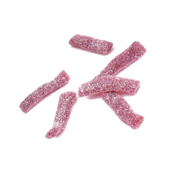 Det her er et morsomt stykke slik, som ligner forkortede udgaver af fettuccine-pasta. Godt nok er de formede som fettuccine-pasta, flade og tynde, men de er bløde som en sky! Smagen af grape i denne vingummi sammen med den syrlige overflade er den perfekte kombination. Den modne grapesmag er fantastisk. Slikket her er dækket med stykker af sukker og syrligt pulver for at give det et delikat bid i hvert stykke. Den genlukkelige pose gør det her slik let at have med i lommen og dele med dine venner!