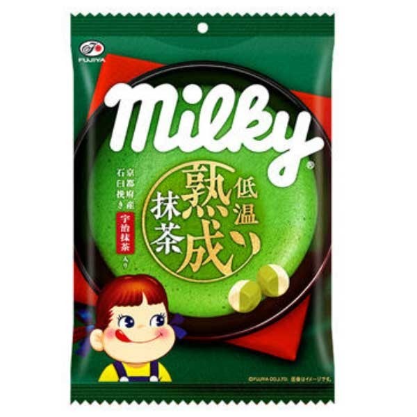 Denne pakke har den berømte og søde figur Peko-chan på forsiden. Figuren ses overalt i Japan – lige fra reklameskilte til covers. Indeni pakken er individuelt indpakkede stykker slik, som har mere Peko-chan på sig. Selve slikket har smag af skøn grøn te og cremet mælk, som kommer fra Hokkaido-regionen. Teksturen er dejlig og tyggevenlig, og minder om karamel eller blød toffee. Denne klassiske slik anbefaler vi på det højeste hvis, du ønsker at smage på det ægte Japan!