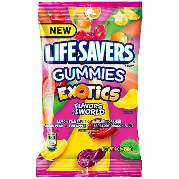 Ingredienser: majssirup, sukker, vand, modificeret majsstivelse, gelatine; mindre end 2% af: surhedsregulerende middel: E330, naturlig og kunstig smag, overfladebehandlingsmidler: E905a, E903; farvestoffer: E129*, E102*, E133.